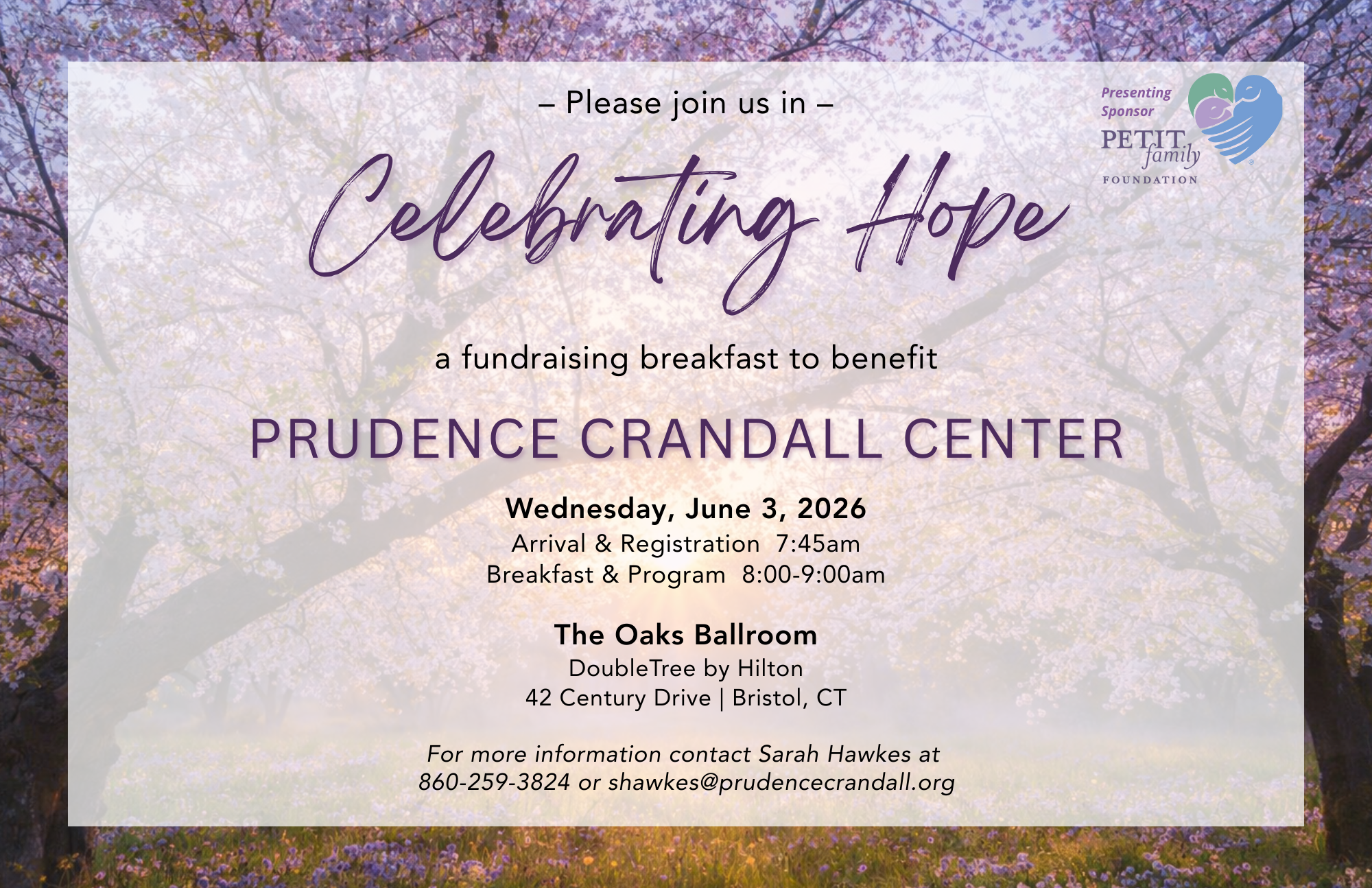 | For more information & sponsorships, contact Sarah at shawkes@prudencecrandall.org or 860-259-3824 |